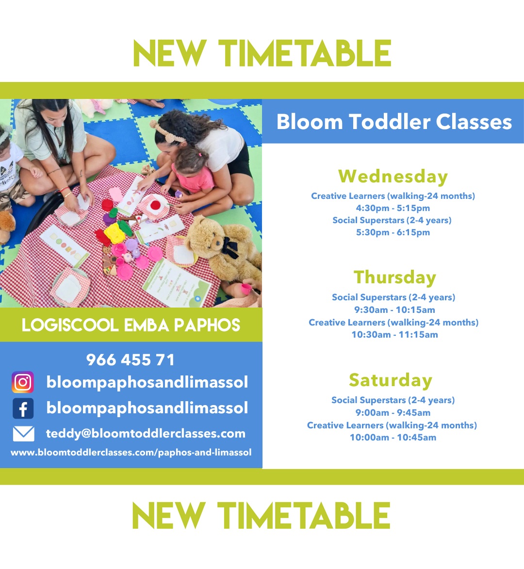 Navigating new motherhood during a pandemic was challenging yet rewarding. With a background in primary school education, specializing in the Early Years Foundation Stage, nurturing young minds has always been my passion. Upon returning to Cyprus in June 2022, I noticed a gap in parent-toddler classes that fostered community and support, inspiring me to start Bloom Toddler Classes.