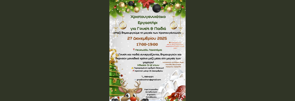 σας προσκαλούμε σε ένα ξεχωριστό χριστουγεννιάτικο εργαστήρι γεμάτο δημιουργία, χαρά και συνεργασία! 💫