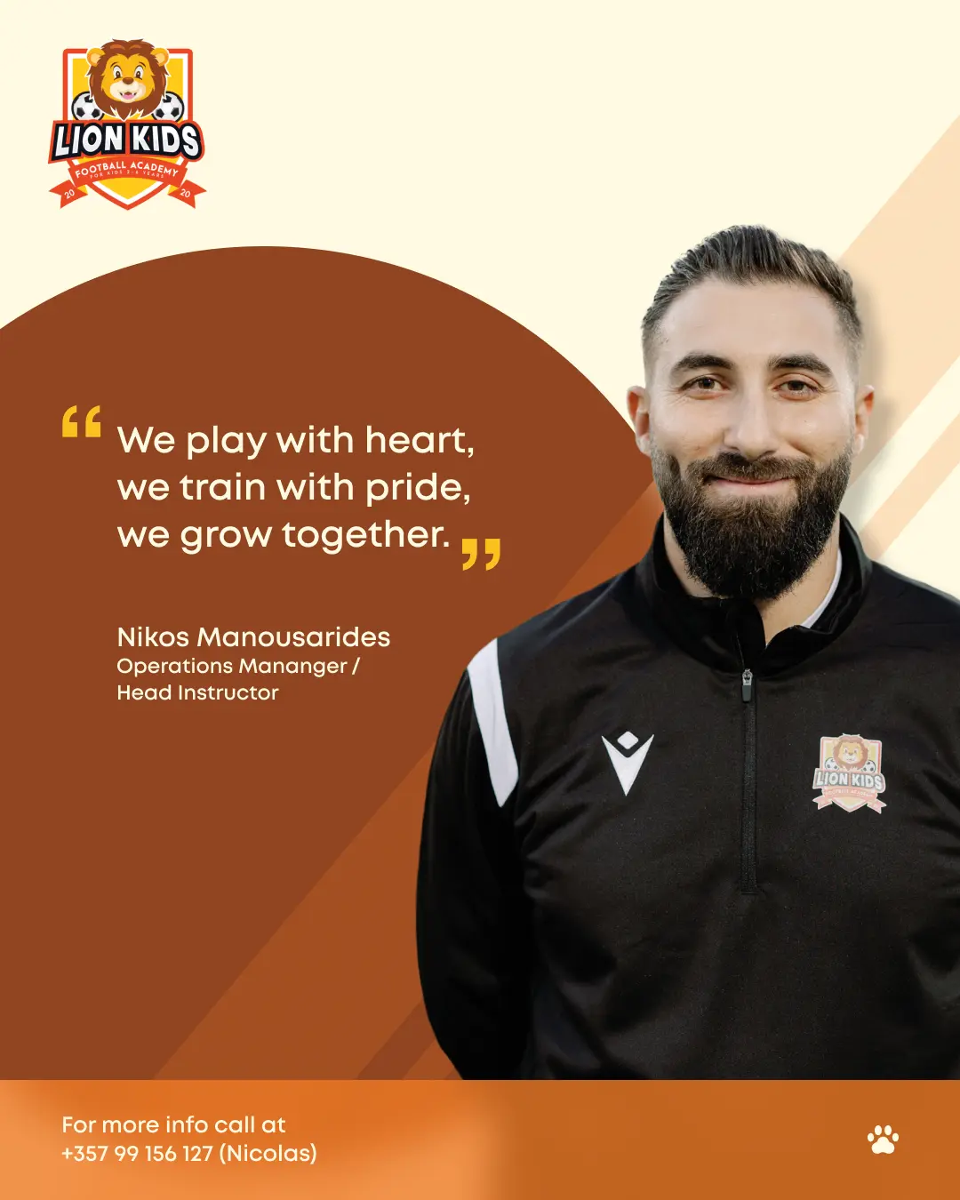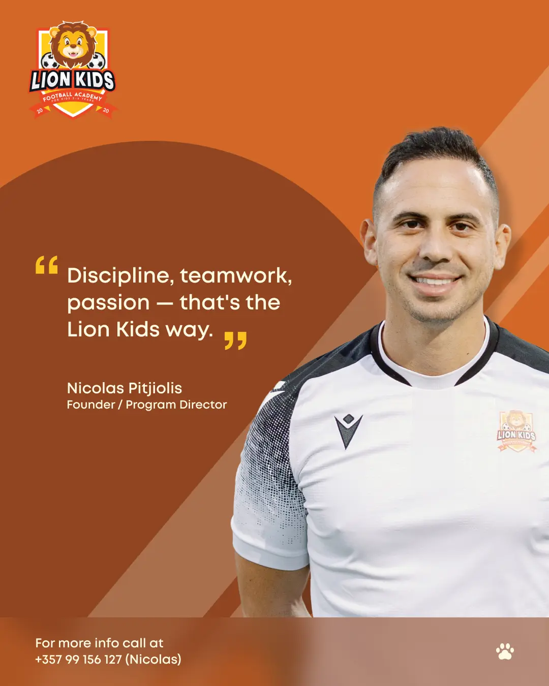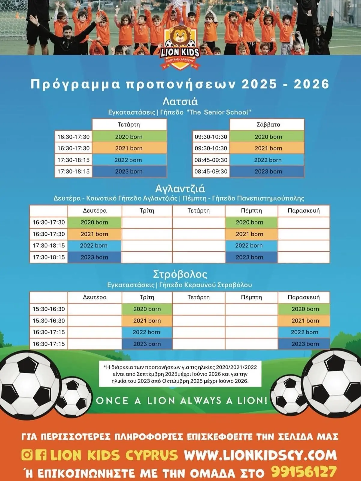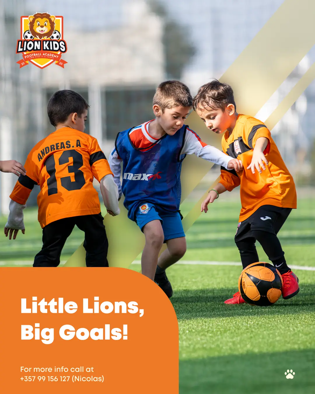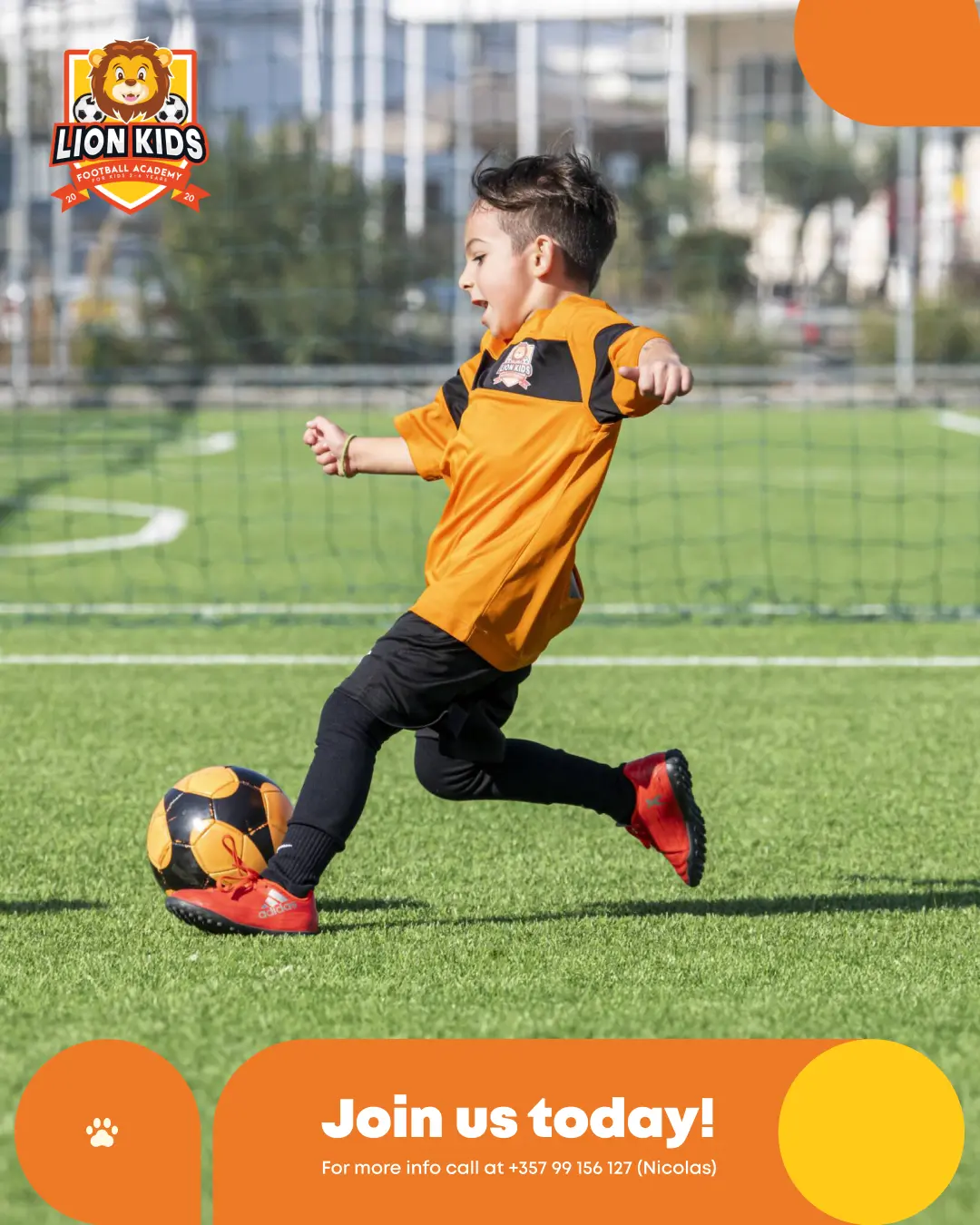 Lion Kids Cyprus is an innovative program created by childcare professionals and football experts, with the aim of introducing children aged 2.5 to 6 years old to basic football skills. The Lion Kids Cyprus program is designed to promote and strengthen the basic principles of development, emphasizing the fun aspect!